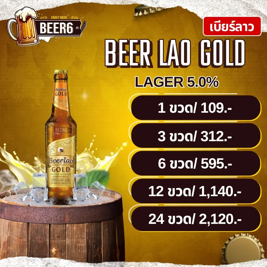 เบียร์ลาว ราคาส่ง เริ่มต้น 40 บาท รสชาติดี ห้ามพลาด !! เบียร์ลาว (Beerlao) เบียร์ประจำชาติของลาว ที่คนไทยนิยมมากที่สุดรสชาตินุ่ม สดชื่น ดื่มง่าย เหมาะกับอากาศเมืองไทยทุกโอกาส สินค้า " เบียร์ลาว " ในร้าน Witbear Quick ViewBEER | LAO GOLD LAGER ฿119.00 หยิบใส่ตะกร้า « Previous 1 2 แนะนำ 3 เบียร์ลาว ขายดี !! อันดับต้นๆ ต้นกำเนิด เบียร์ลาว เริ่มผลิต ตอนไหน ? เบียร์ลาวเริ่มผลิตในปี 1973 โดยโรงเบียร์ลาว (Lao Brewery Company)ผสมผสานวัตถุดิบท้องถิ่นกับเทคนิคยุโรป ได้รสชาติกลมกล่อมไม่เหมือนใคร เบียร์ลาว มีกี่ประเภท กี่แบบ ให้เลือก Beerlao Lager รสนุ่ม ดื่มง่าย กลิ่นหอมข้าวอ่อน ๆ Beerlao Dark เข้มข้น หอมมอลต์ เหมาะกับสายเบียร์เข้ม Beerlao Gold พรีเมียม นุ่มละมุน กลิ่นผลไม้บางเบา Beerlao White เบา สดชื่น ดื่มได้ทุกโอกาส Beerlao IPA ขมซ่า กลิ่นฮอปส์เด่นสำหรับสายคราฟต์เบียร์ ข้อดีและจุดเด่นหลัก " เบียร์ลาว " ใช้ ข้าวหอมมะลิแท้ จากลาว ให้รสกลมกล่อมไม่ขมจัดกลิ่นหอมมอลต์นุ่ม สดชื่น ดื่มง่ายมีหลายรสให้เลือก เช่น Lager, Dark, Gold, IPAคุณภาพระดับโลก ได้รางวัลหลายปีซ้อนเป็นเบียร์ประจำชาติของลาว ที่ดังไปทั่วเอเชีย วิธีเก็บรักษาเบียร์ลาว อย่างถูกต้อง เก็บในตู้เย็นอุณหภูมิ 4–8°C เพื่อคงรสชาติสดใหม่หลีกเลี่ยงแสงแดดและความร้อนโดยตรงตั้งขวดให้ตรง ไม่เขย่าแรงดื่มภายใน 6 เดือนหลังผลิต จะได้รสชาติที่ดีที่สุด วิธีเก็บรักษาเบียร์ลาว อย่างถูกต้อง เก็บเบียร์ลาวในตู้เย็นช่องธรรมดา ห้ามโดนแสงตรง ๆจะช่วยคงความสด หอม และรสชาตินุ่มละมุนเหมือนเพิ่งเปิดใหม่ เบียร์ลาว มีจำหน่ายเฉพาะที่ไหนบ้าง ? เบียร์ลาวมีขายในห้างดัง เช่น Tops, Villa Market, Makroและสั่งออนไลน์ได้ที่ Wishbeer, Witbear หรือร้านเบียร์คราฟต์ทั่วประเทศ FAQ คำถามที่พบบ่อยเกี่ยวกับ เบียร์ลาว เบียร์ลาวมีกี่แบบ ? ปัจจุบันมีทั้งเบียร์ลาวคลาสสิค, เบียร์ลาวดาร์ก และเบียร์ลาวโกลด์แต่ละแบบให้รสชาติแตกต่าง ทั้งนุ่ม เข้ม และหอมละมุน เบียร์ลาวรสชาติเป็นยังไง ? มีรสชาตินุ่ม ดื่มง่าย ไม่ขมมาก กลิ่นหอมอ่อน ๆ จากข้าวเหมาะกับคนที่ชอบเบียร์ดื่มสบาย ๆ เบียร์ลาวเก็บได้นานแค่ไหน ? โดยทั่วไปเก็บได้ประมาณ 12 เดือน หากเก็บในอุณหภูมิ 4–8°Cควรหลีกเลี่ยงแสงแดดและความร้อนโดยตรง